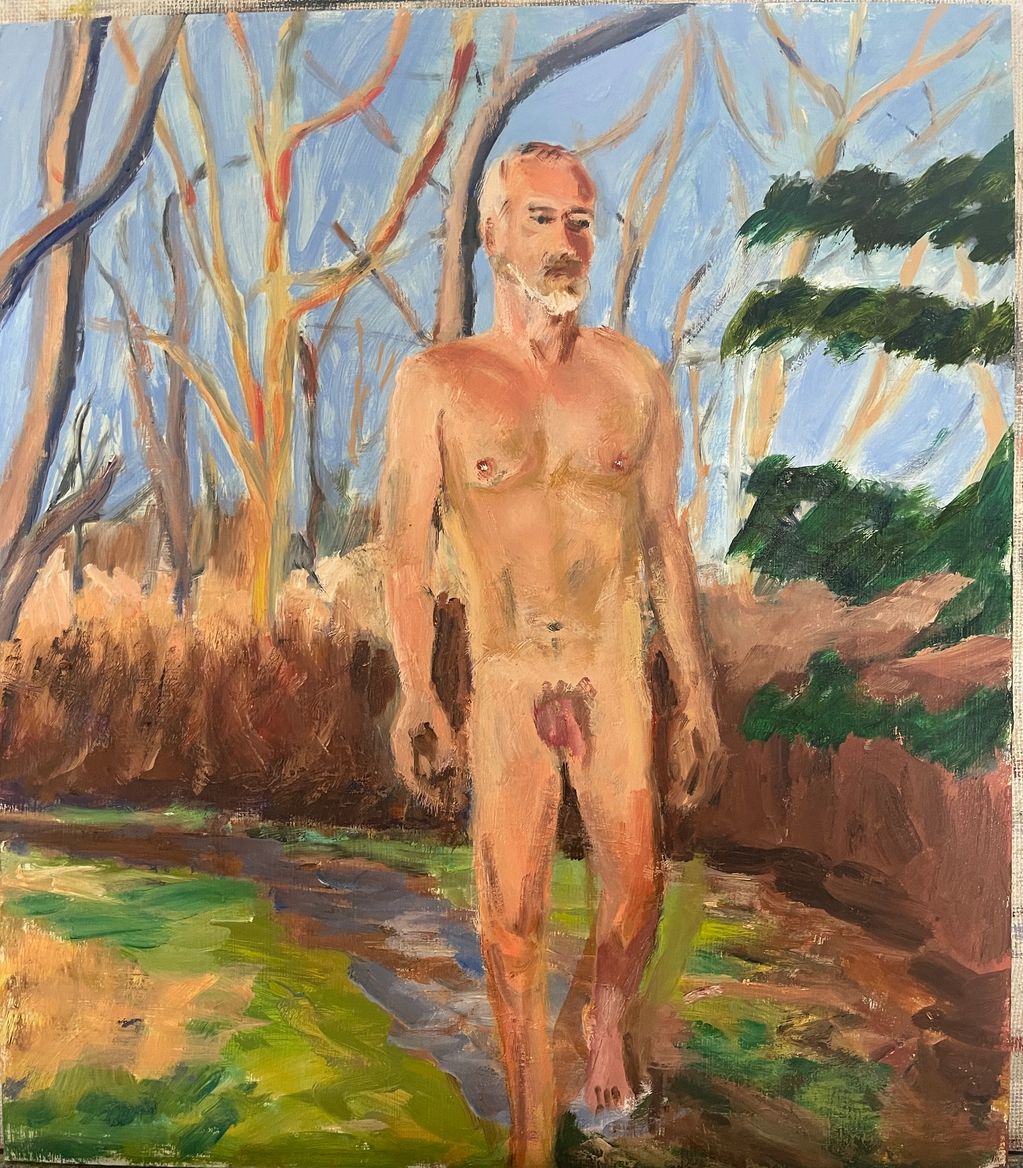 Naturalist Crossing through Fall foliage's cacophonous last gasp at the Twine Fields Conservation Area North Truro